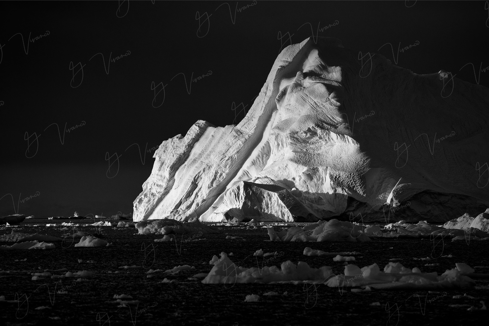 Navegábamos ya al atardecer, faltaban tal vez dos días antes de que emprendiéramos el regreso y nuestras emociones estaban desbordadas. Ese atardecer fue impresionante, mágico. Poco a poco, la luz maravillosa de la Antártica fue inundando todo. Cuando nos cruzamos con este iceberg, los cambios de luces, las sombras, los juegos de luces y sombras me dejaron realmente perplejo, maravillado y asombrado. Decidí hacer la foto y pasarla a blanco y negro porque fue un momento de introspección muy profundo, donde quería destacar precisamente el concepto del silencio. Así nace esta foto, buscando una emocionalidad muy interna, viendo un paisaje que realmente me impactaba en todo el sentido de la palabra.